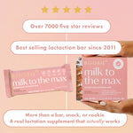Our Milk to the Max™️lactation bars are the most convenient way to support a healthy milk supply*. Each bar delivers 1480 mg of lactation-boosting superfoods plus 5 g of protein. Just one delicious bar a day replaces messy teas and handfuls of hard-to-swallow supplement pills.