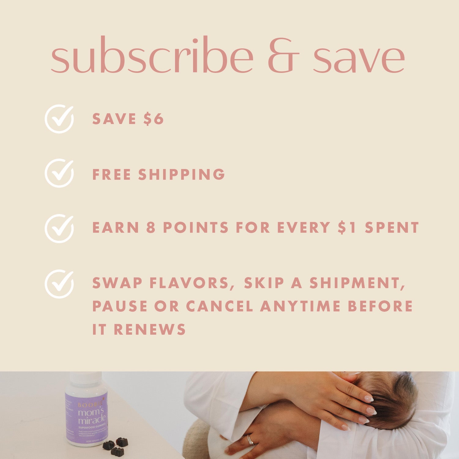 Mientras cría a su familia, use BOOBIE* Bears como un suplemento continuo para el cabello y las uñas.