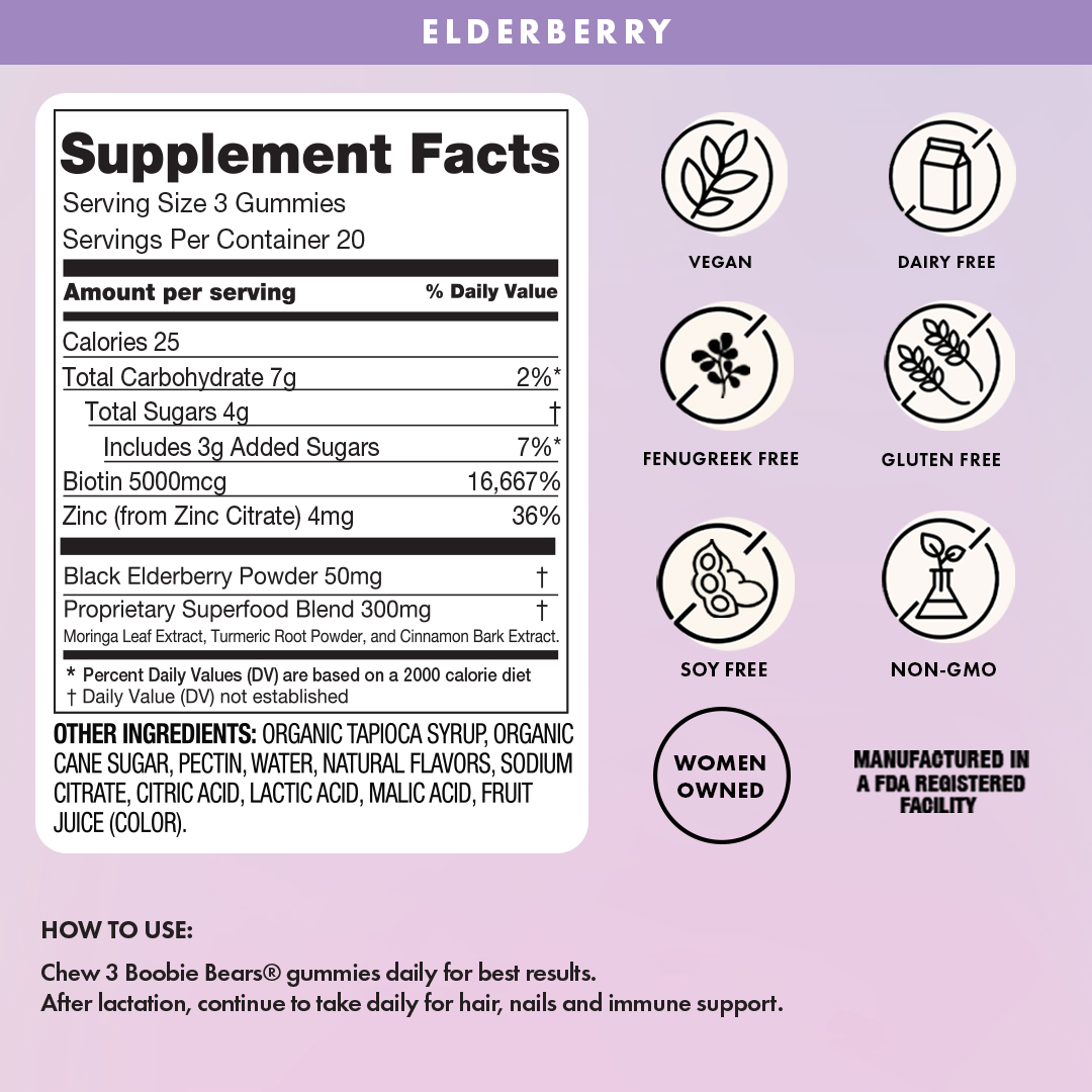 - Los ositos BOOBIE* son un excelente suplemento para la lactancia repleto de superalimentos que estimulan la producción de leche para promover un suministro de leche saludable, que incluye moringa, cúrcuma y canela.