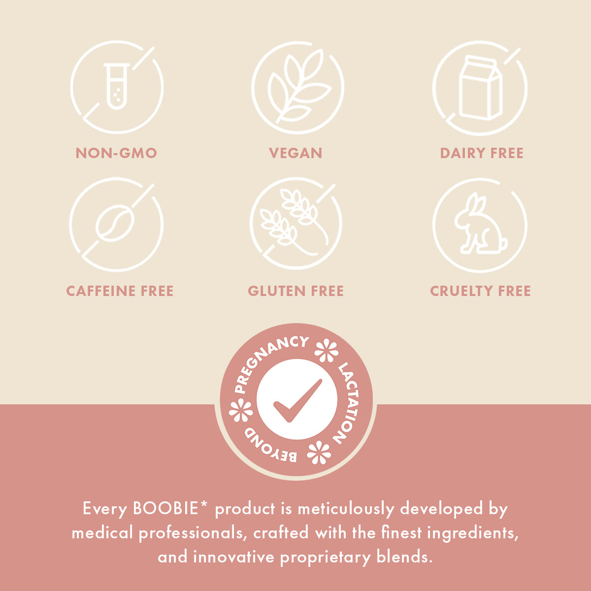During your pregnancy, BOOBIE* Body is packed with plant-based protein powder, fiber, probiotics and iron that you need during your pregnancy