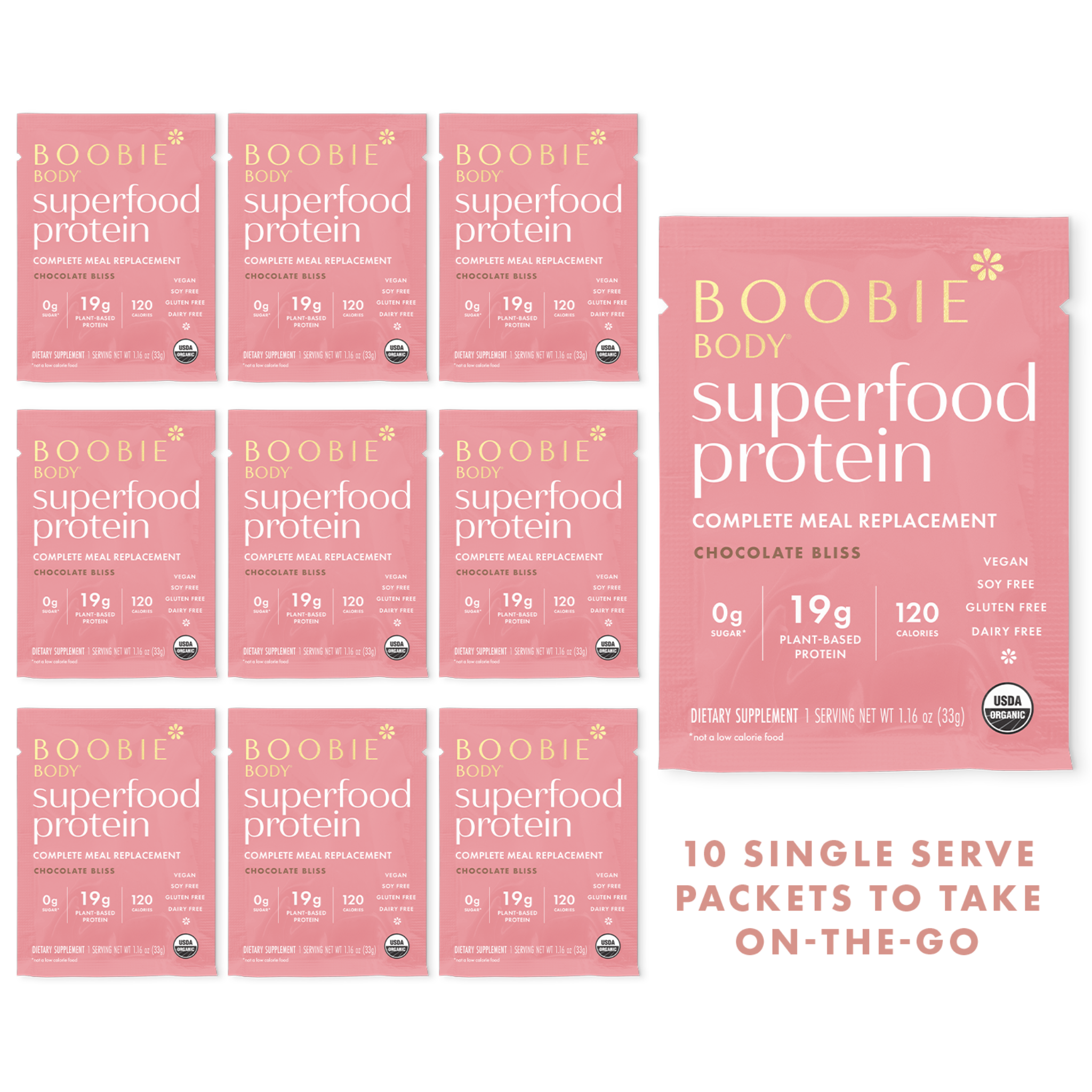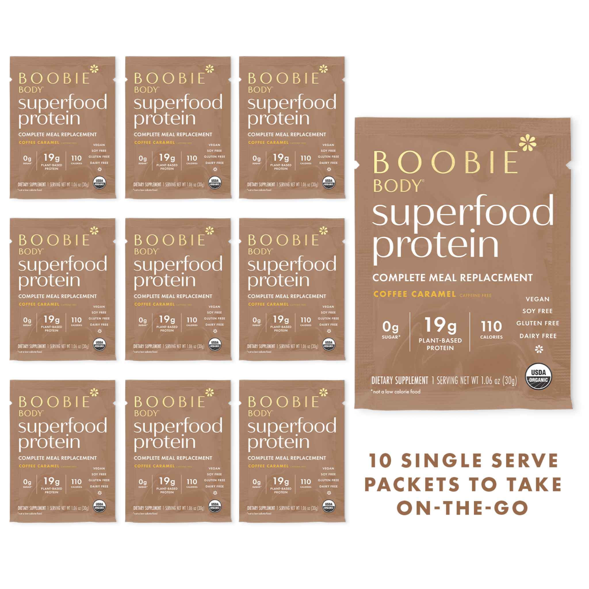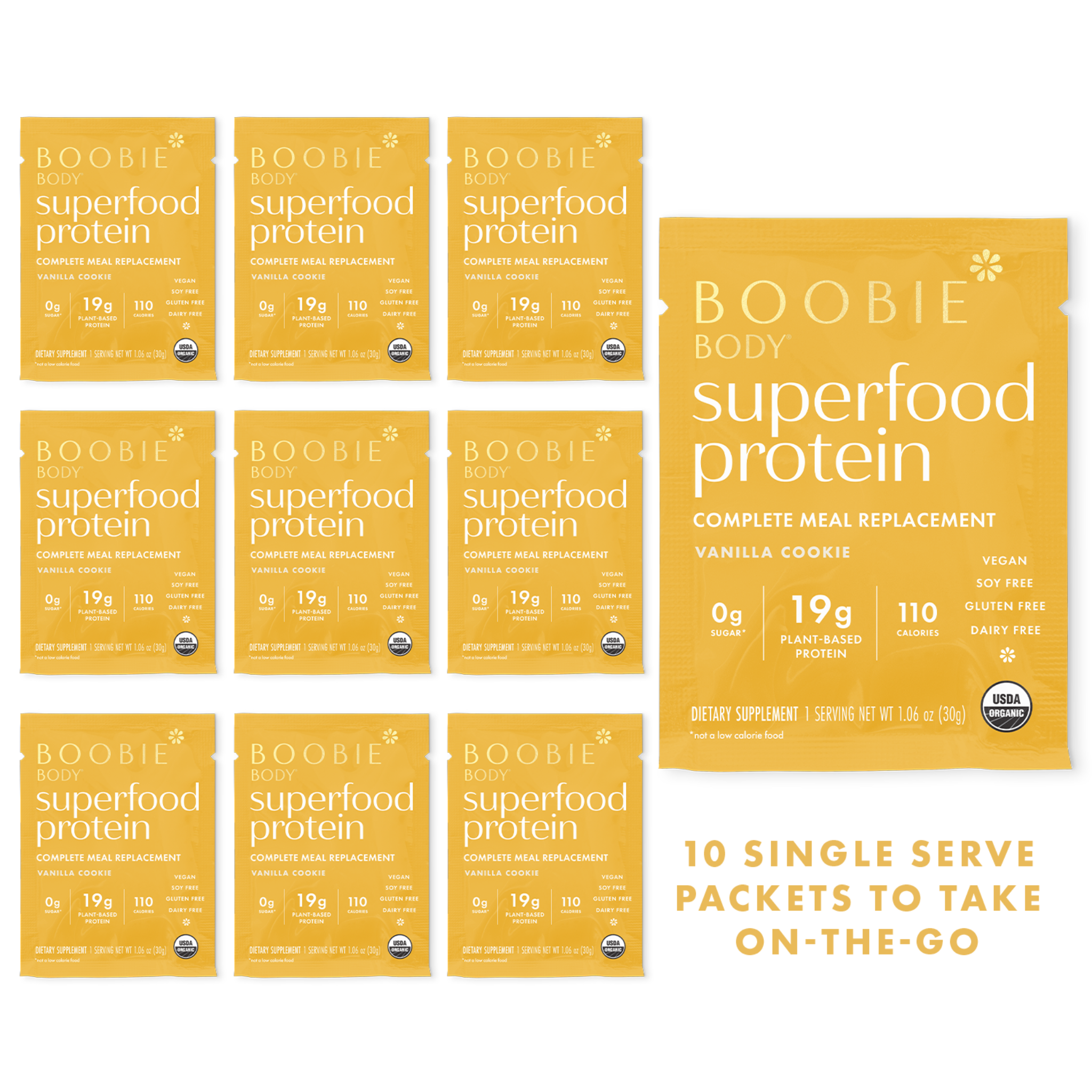 While you are raising your family, BOOBIE* Body has 19g of plant-based protein, a complete amino acid profile, fiber, and pre and probiotics to give you a full meal replacement on-the-go