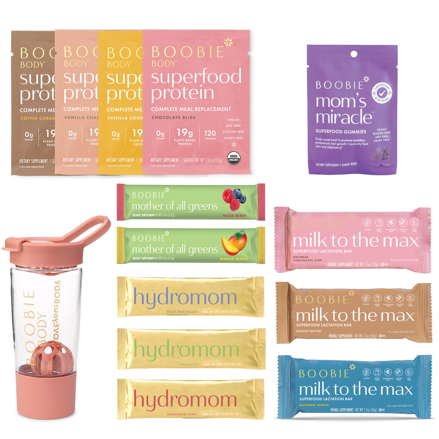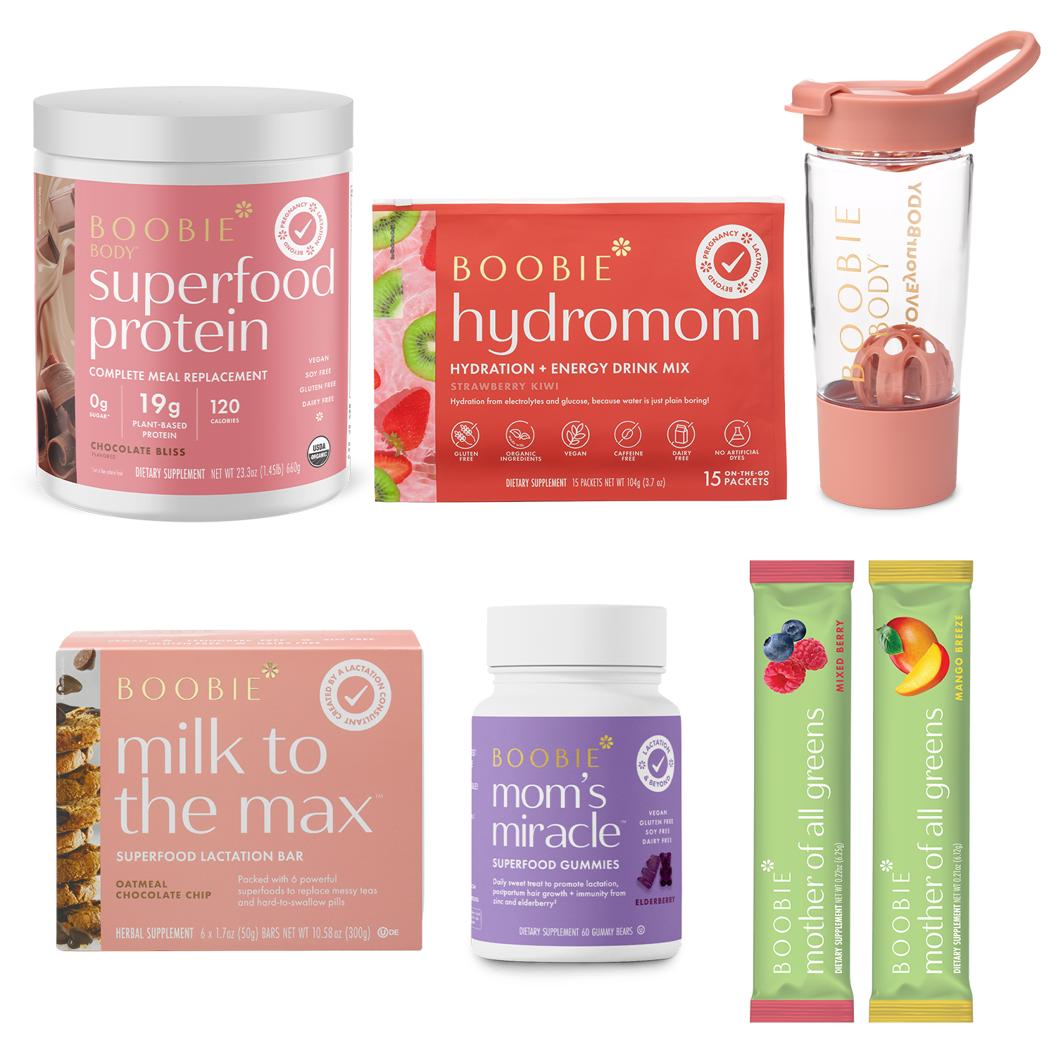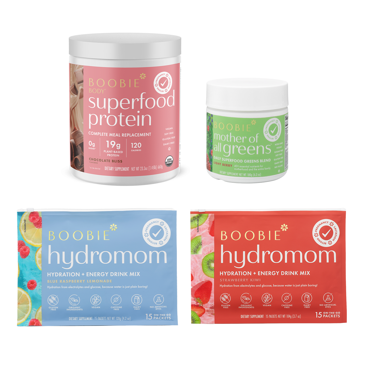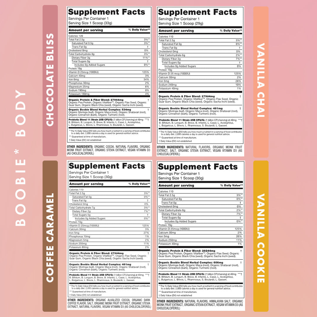 During your pregnancy, BOOBIE* Body is packed with plant-based protein powder, fiber, probiotics and iron that you need during your pregnancy