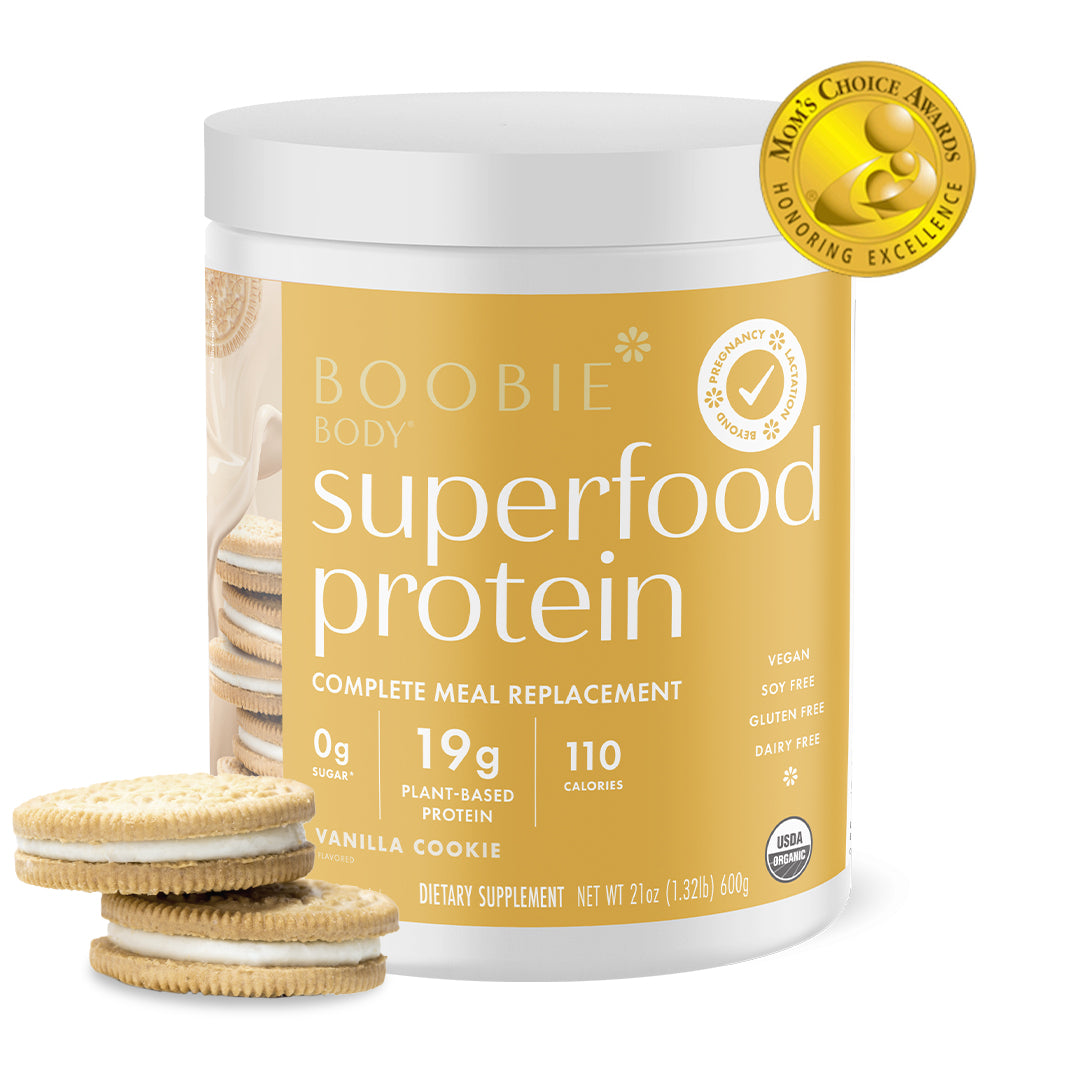 During your pregnancy, BOOBIE* Body is packed with plant-based protein powder, fiber, probiotics and iron that you need during your pregnancy