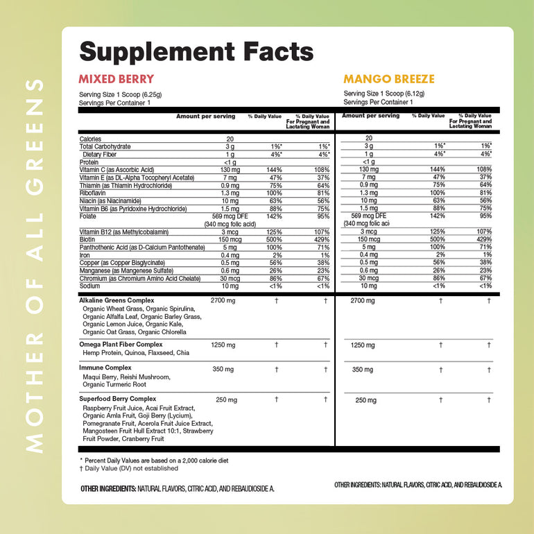 • 2 Mother of All Greens packets for 35+ essential nutrients